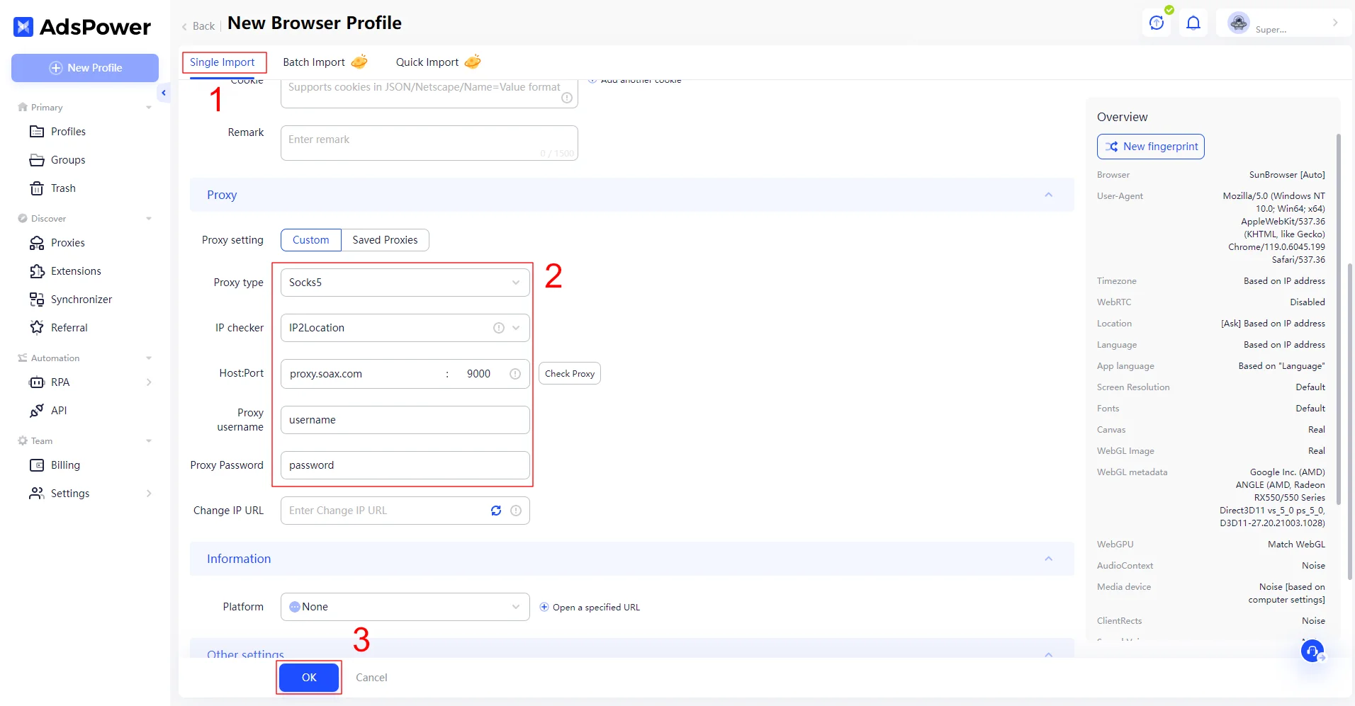 Get started with SOAX proxies and AdsPower anti-detect browser in 5 minutes. No complicated setup required.