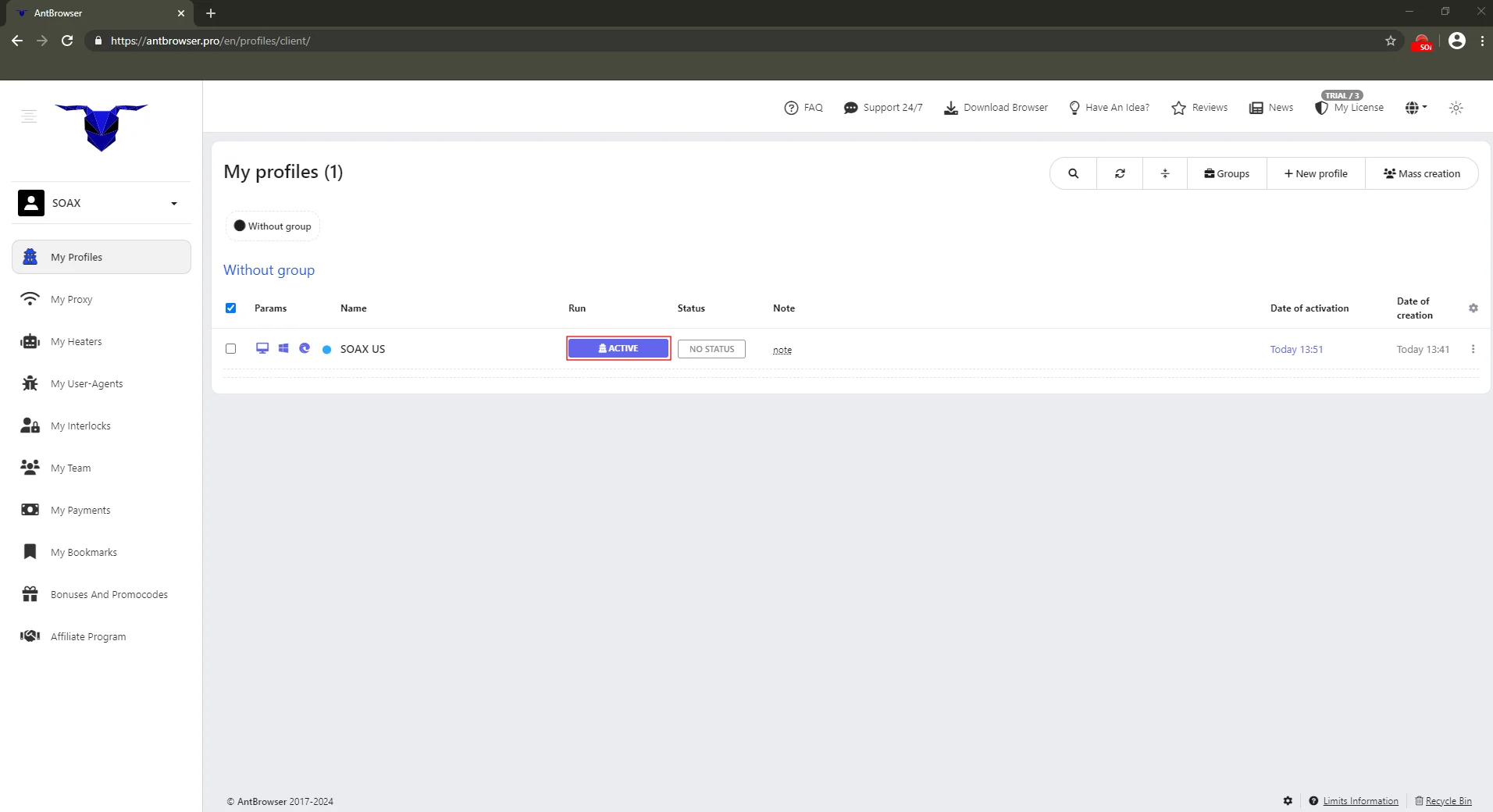 Go the their website and download the latest version of the anti-detect browser. Extract it from the .zip file, start the browser, and log in.